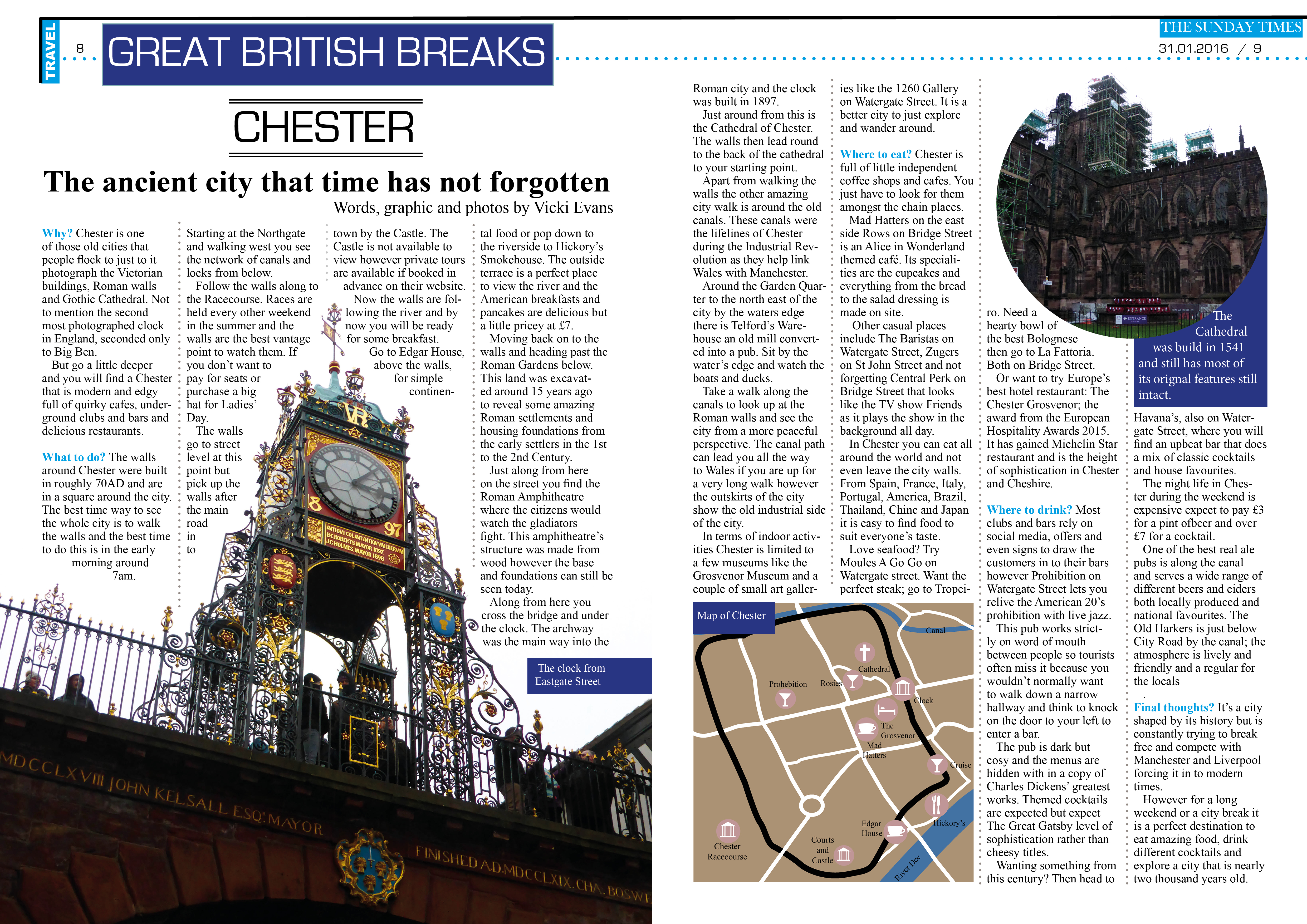 This design is based off the Sunday Times ‘Great British Breaks’ articles. This one also has the full copy in the layout. The graphic at the bottom I designed using photoshop and was in the style of The Sunday Times maps.